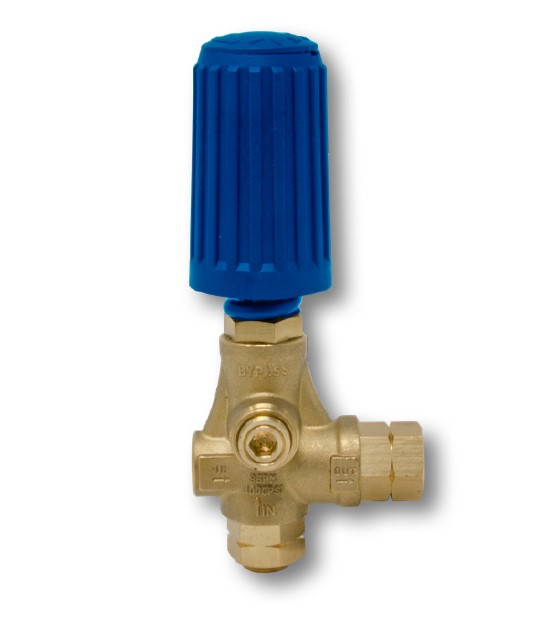 Válvula reguladora Bypass de alto desempeño, diseñada para proteger la bomba y controlar la presión de salida en hidrolavadoras profesionales e industriales. Su resorte azul ofrece una calibración estable y duradera, ideal para equipos de uso continuo.